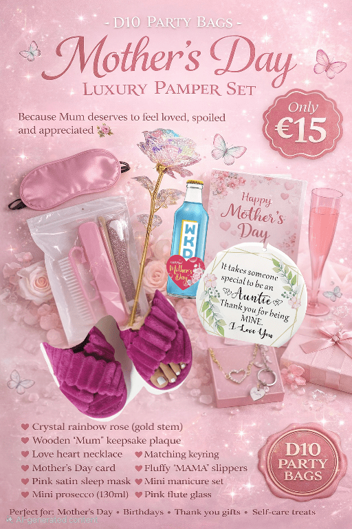 Treat your wonderful Auntie to something truly special this Mother’s Day. This luxury pamper gift set includes a mini bottle, fluffy slippers, heartfelt keepsakes, jewelry, and relaxing self-care essentials – beautifully presented and ready to gift.