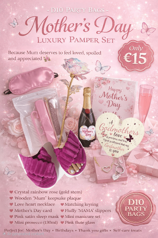 Spoil your wonderful Godmother this Mother’s Day with a luxury pamper gift set featuring cosy slippers, a mini bottle, heartfelt keepsake plaque, jewelry, and self-care treats – beautifully presented and ready to gift.